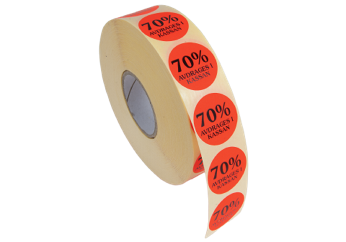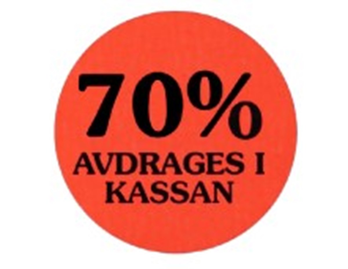 Rabattetiketter 70% avdrages i kassan 2000/rl