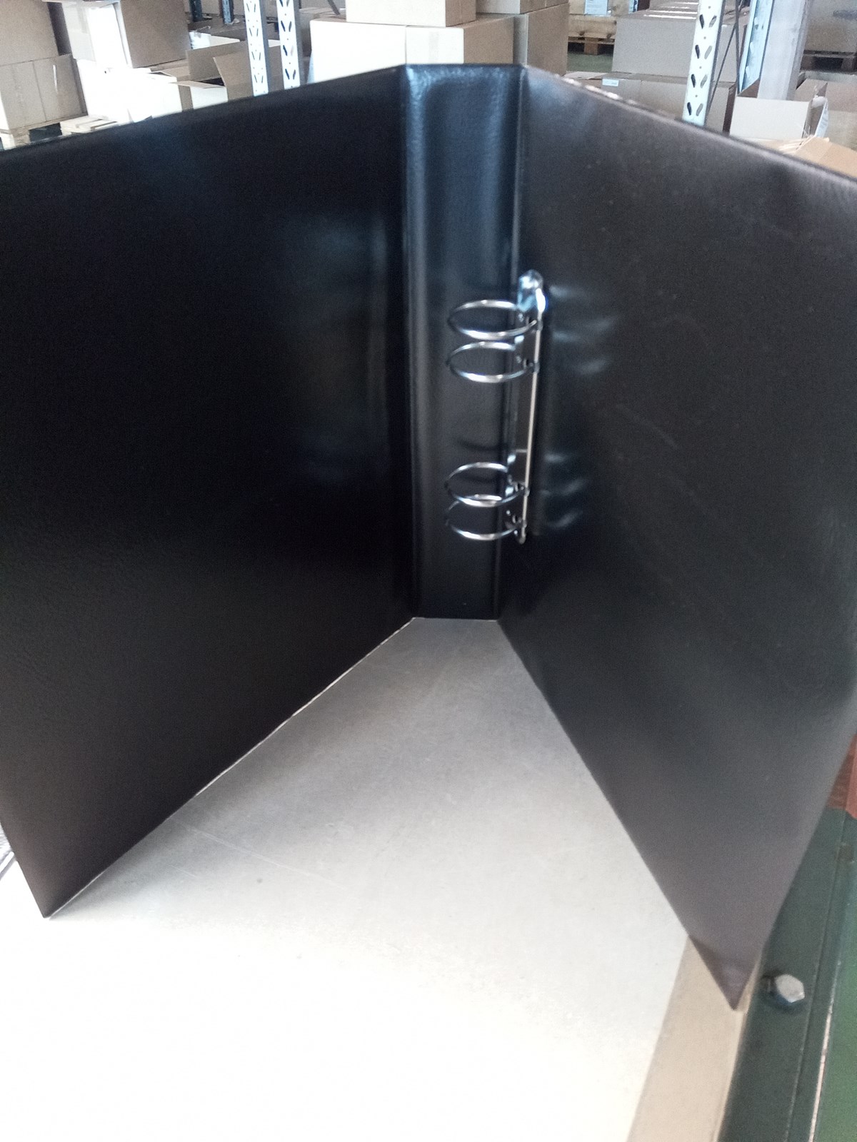 Vit ringpärm i plast. Transparent ficka på framsida och rygg. A4-format, 57 mm bred. 38 mm ringmekanism.