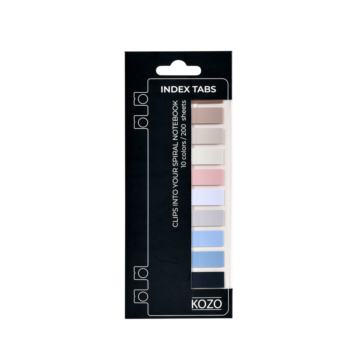 KOZO Indexflikar i snygga, neutrala färger är självhäftande och flyttbara för enkel märkning och organisering. Innehåller totalt 200 flikar i 10 olika trendfärger.