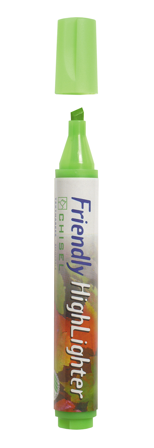 Svensktillverkad överstrykningspenna med pennkropp av miljöanpassat naturvaxat returpapper. Vattenbaserat bläck i fluorescerande färger. Spetsbredd 1–4 mm. 10 st/förp.