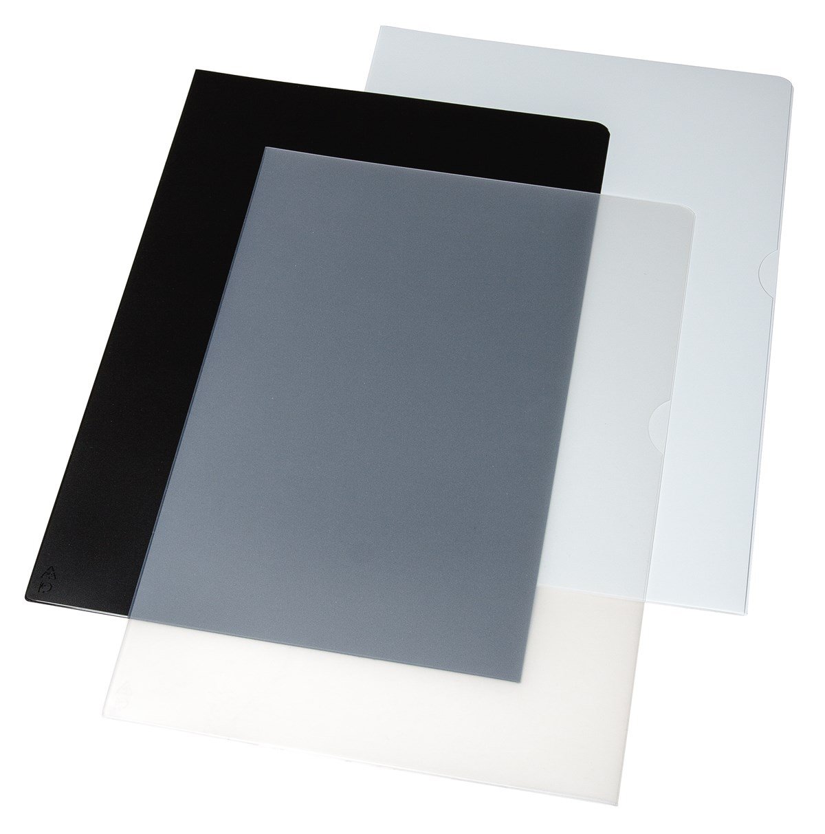 Kraftig mapp i 0,35 mm PP. Öppen kort- och långsida. A4-format.