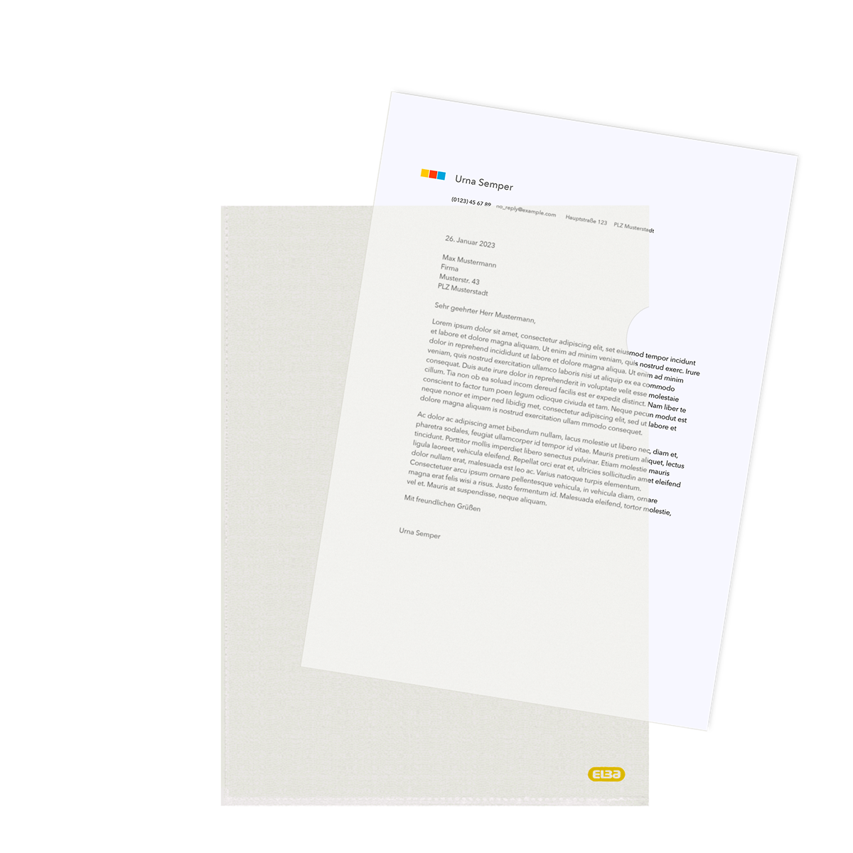 Upptäck ELBA Plastmappar – ditt miljömedvetna val för dokumentskydd! Tillverkad av premium återvunnet PE-material certifierat med Blue Angel och tillverkat av minst 80 % återvunnet material (post consumer), gör vår mapp ett verkligt uttalande för hållbarhet. Med en tjocklek på 100 µm erbjuder den inte bara ett förstklassigt skydd för dina dokument utan skapar också en perfekt balans mellan flexibilitet och hållbarhet. Dess generösa storlek passar en mängd olika DIN A4-dokument, upp till 20 ark. Med ELBA Plastmappar gör du ett miljövänligt val utan att kompromissa med kvaliteten. Skydda dina dokument hållbart och effektivt med ELBA Plastmappar. Finns i förpackningar om 50st eller 100 st
