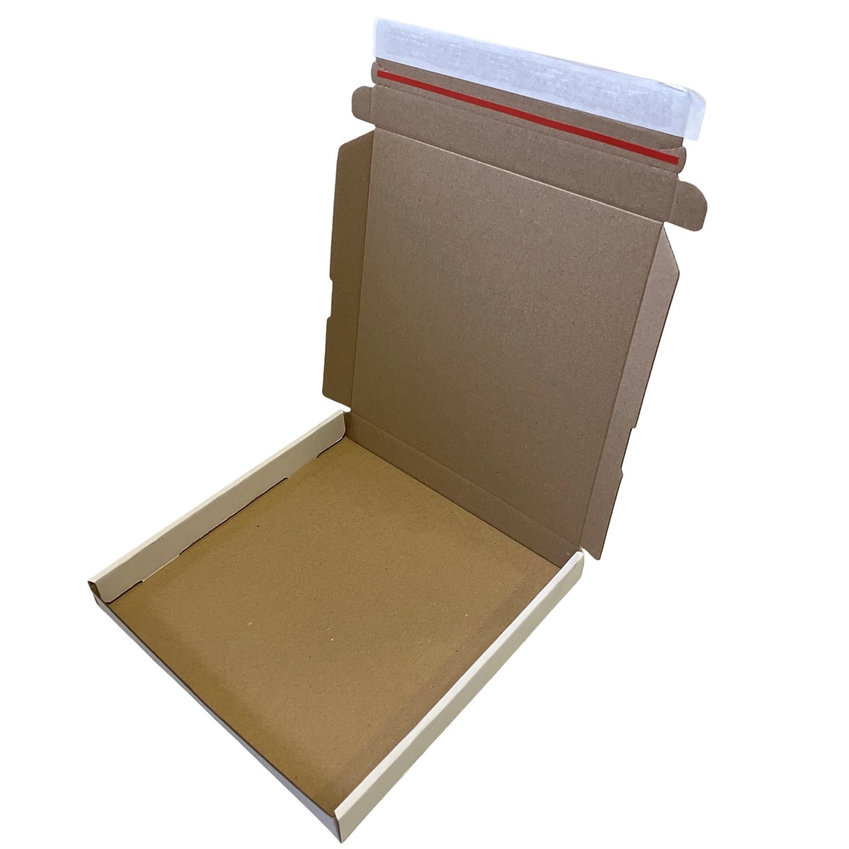 En mindre låda lämplig att skickas som brev. Tack vare att yttermåttet håller en lägre höjd än 3 cm går det in i vanliga brevinkast och postlådor. Försluts med inbyggd tejpremsa och den inbyggda rivremsan gör öppnandet smidigt. Kan levereras med tryck. Färg: vit/brun. 20 st/förp.