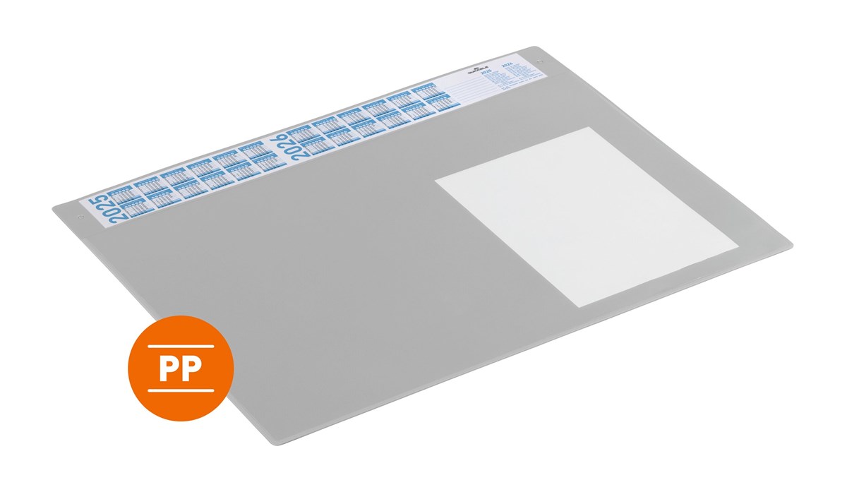 Använd skrivbordsunderlägg för att skydda bordet mot slitage. Detta underlägg har transparent, reflexfri och borttagbar klaff som det går att förvara noteringar, anteckningar och lappar under. Dessutom en smal översiktskalender för 4 år.