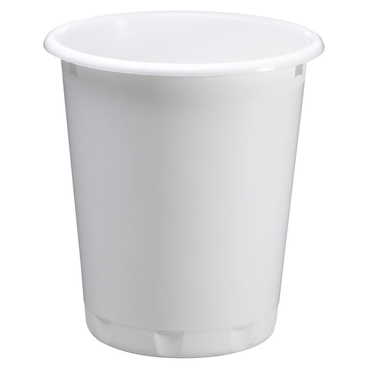 Rund, konisk, stapelbar med greppkant. Tillverkad av polypropen. Höjd 32 cm, diameter 29 cm. Rymmer 13 liter.