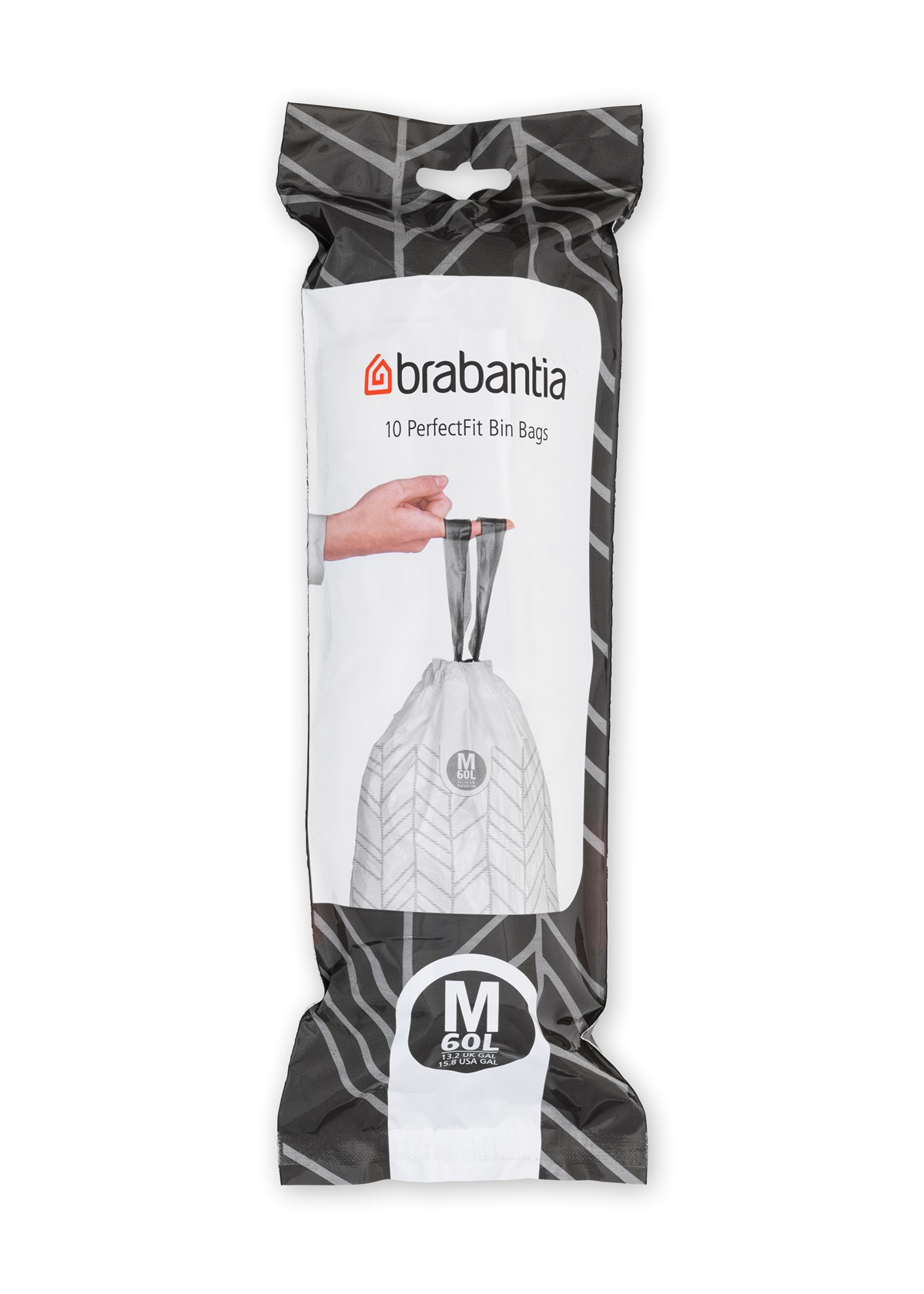 Brabantia PerfectFit avfallspåsar passar perfekt till din Brabantia avfallshink. De är extra starka och har det praktiska knytbandet! Dra bara i det för att ta påsen ur avfallshinken och försegla den. Är du inte säker på vilken storlek du behöver? Kontrollera helt enkelt färgkoden på insidan av avfallshinkens lock.