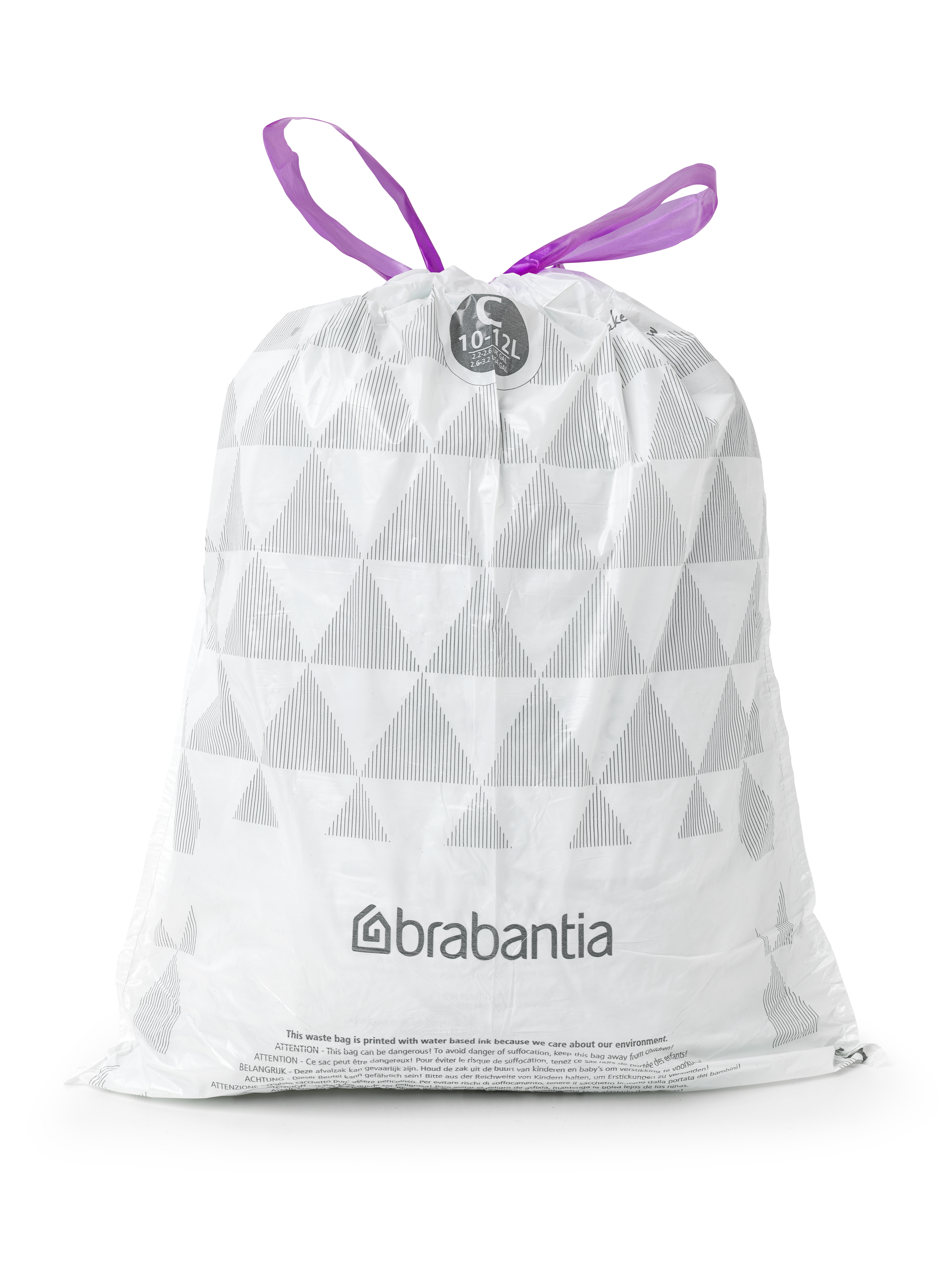 Perfekt passform – skräddarsydd för Brabantias avfallshinkar. Varje avfallsbehållare från Brabantia har en kodning i locket. Matcha kodningen i locket med påsar av samma kod så passar påsen perfekt. Tack vare ett praktiskt knytband som dessutom fungerar som bärsnöre går det snabbt och enkelt att byta påsen. Kanten blir i princip osynlig och sitter alltid säkert på plats i din avfallshink. 40 påsar/förp.