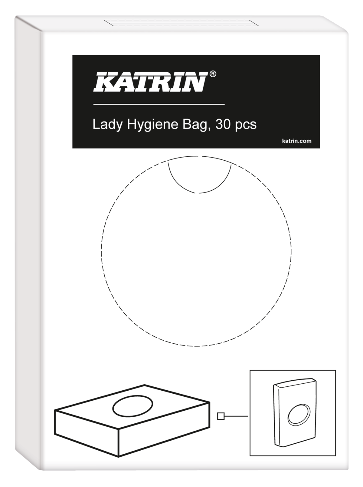 Standardutrustning för varje damtoalett. Hygienpåsarna sitter inuti hygienpåshållaren och hålls effektivt på plats.
