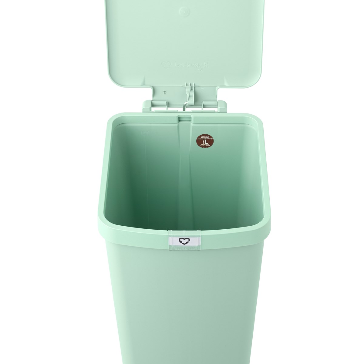 Steppa upp din återvinning med Brabantias StepUp pedalhink 40L! Tillverkad av 91% återvunnet avfall och för återvinning av avfall. Med en klicketiketthållare för dina egna avfallsetiketter och en praktisk påsförvaring inuti. Mjuk stängning - locket stängs smidigt. Ingen ful kant av påsen - matchande Brabantia PerfectFit avfallspåsar med knytband finns tillgänglig. Stort grepp på baksidan gör det enkelt att flytta tunnan. 10 års garanti.