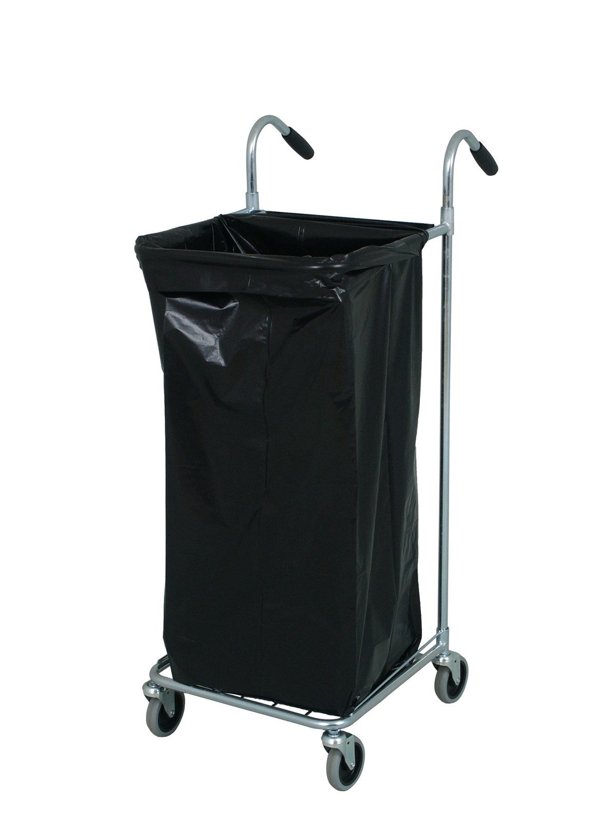 Säckvagn Martin är en sopställsvagn för 125-160 liters säckar med smidiga körhandtag och lättrullade gummihjul. Stället har en i höjdled justbar säckring.