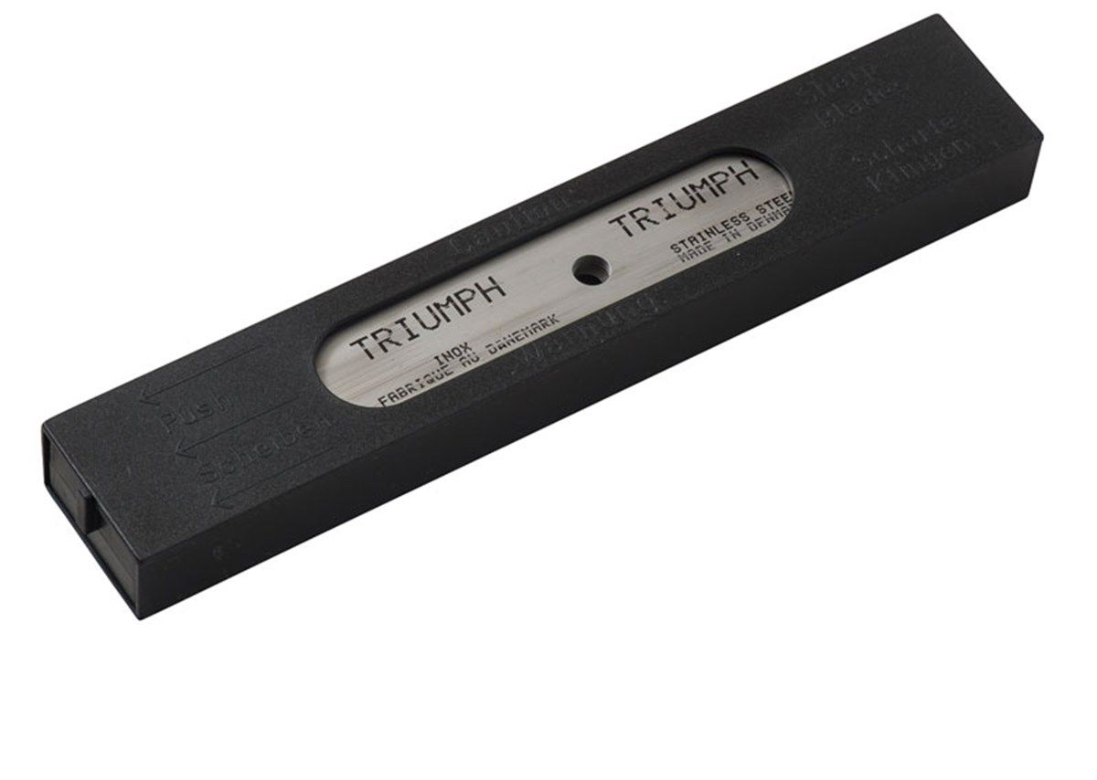 Alla Triumphblad är vassa på båda sidor, vilket gör dem extremt ekonomiska att använda. Bladet vänds helt enkelt och en ny skrapkant är tillgänglig. Triumphbladen levereras i en praktisk dispenser, vilket gör dem lätta att använda och de använda knivarna är lätt att ta hand om efter användning.