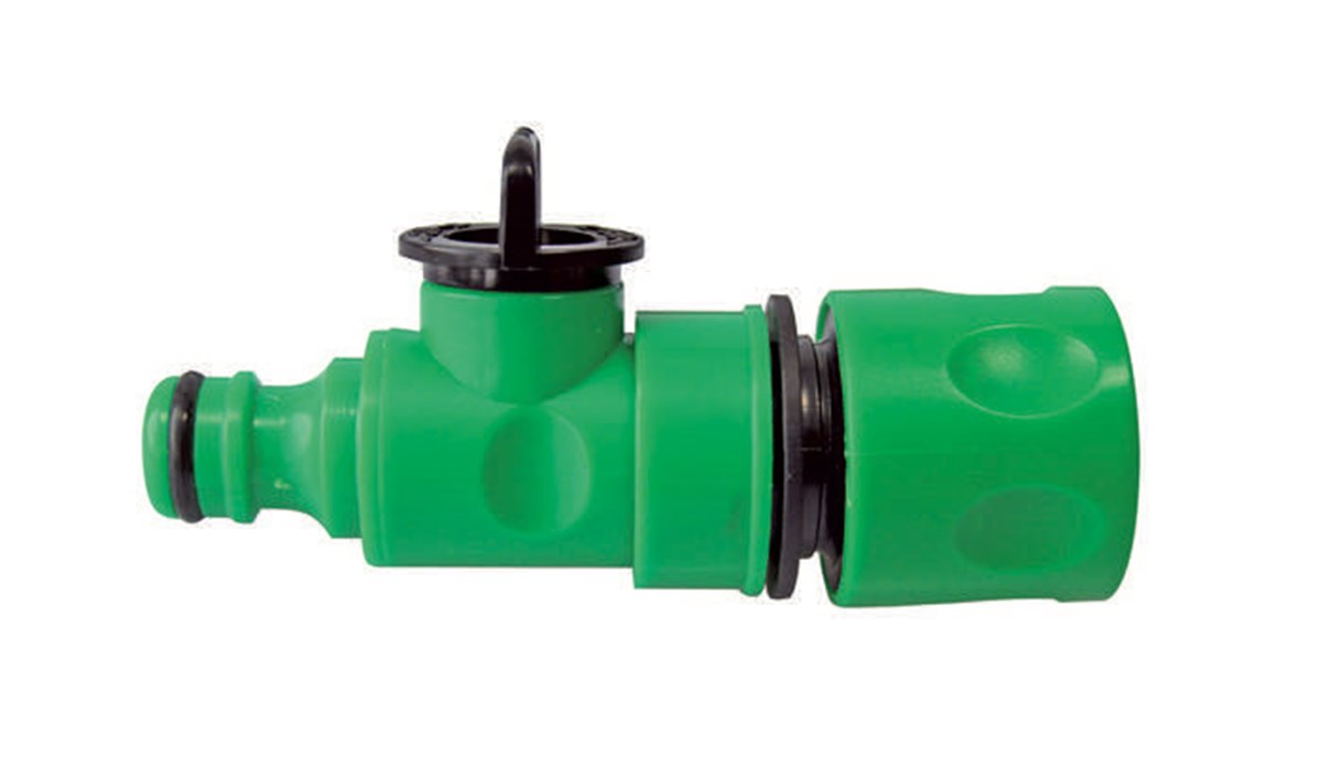 Nylonventil för flödeskontroll och avstängning på original Unger nLite HydroPower DI filter (MK1) med grått lock. Hoselock-kompatibel och slitstark, enkel att byta.