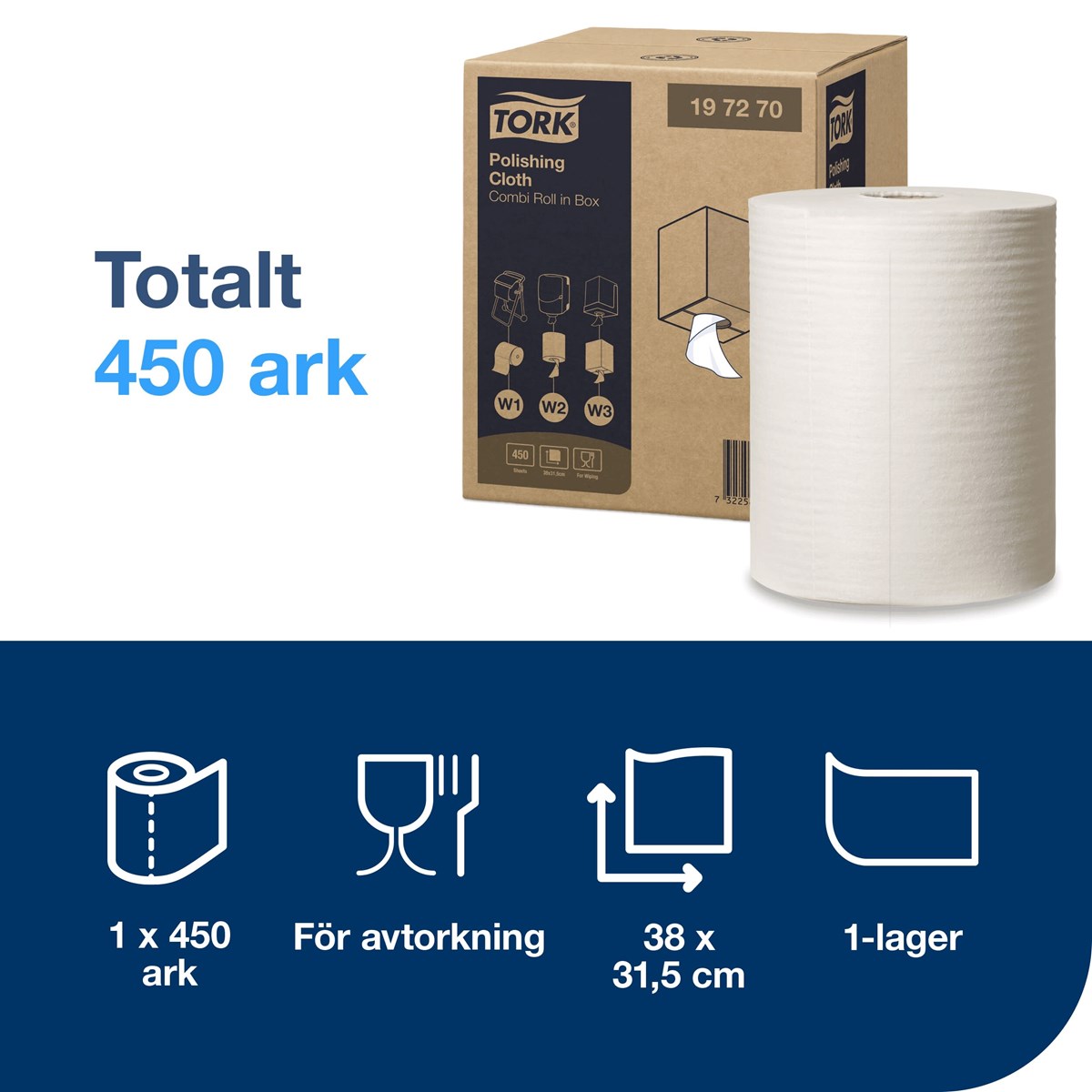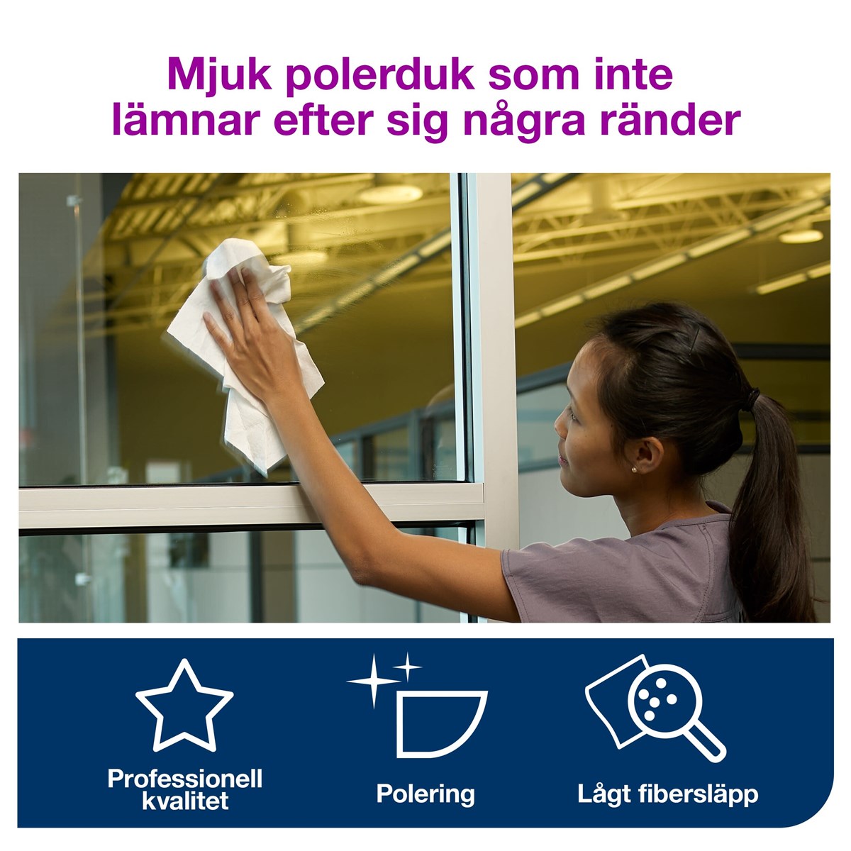 Tork polerduk är idealisk för polering av känsliga ytor. Passar perfekt för känsliga ytor tack vare sitt mycket låga fibersläpp. 171 m x 31,5 cm.