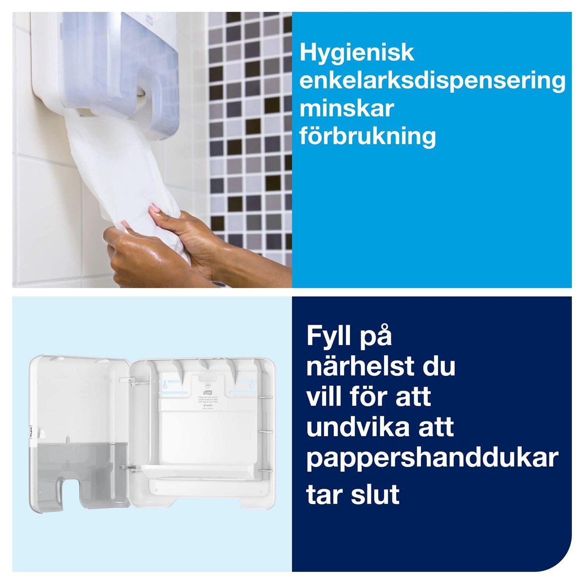 Tork Xpress® Mini Dispenser Multifold Handduk i Elevation-design är lämplig för miljöer med krav på både komfort och hygien. Den kompakta och snygga dispensern passar in i toalettutrymmen med låg till medelhög besöksfrekvens där utrymmet är begränsat. Genom utmatning av ett ark i taget minskar både förbrukning och avfall. Tork Elevation dispensrar har en funktionell, modern design som skapar ett bestående intryck hos dina besökare.