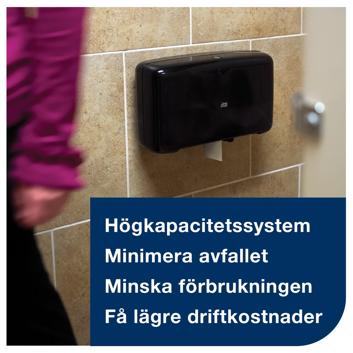 Systemet Tork Mini Jumbo innebär effektivt utnyttjande av tiden och minskade kostnader och erbjuder mycket mer toalettpapper än standardrullar. Tork Mini Jumbo toalettpapper med 2 lager i Advanced-kvalitet skapar en god balans mellan kostnad och prestanda och passar perfekt för platser med medelhög till hög besöksfrekvens. Pappret tillverkas av 100 % återvunna fibrer. 170 m/rulle. 12 rl/förp.
