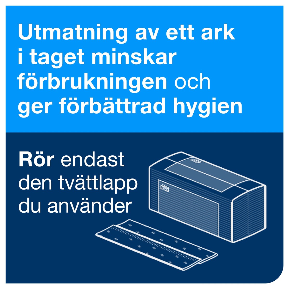 Bästa möjliga patientvård kräver engångsdukar som rengör huden effektivt och skonsamt. Våra Tork Tvättlappar finns i olika antal lager och storlekar för att tillgodose alla möjliga patientbehov. Sex slitstarka lager, i kombination med en mjuk känsla, resulterar i en tvättlapp som effektivt vårdar ansikte och kropp. Använd tillsammans med mild tvål eller tillsätt bara vatten. Vårt utmatningssystem som ger en tvättlapp i taget säkerställer högsta hygiennivå, samt ser till att förbrukningen och avfallet minskar.20 förpackningar, med 80 ark vardera. 6-lagers. Advanced-kvalitet. Vikt storlek: D 9.5 cm B 25 cm. Ovikt storlek: D 19 cm B 25 cm.